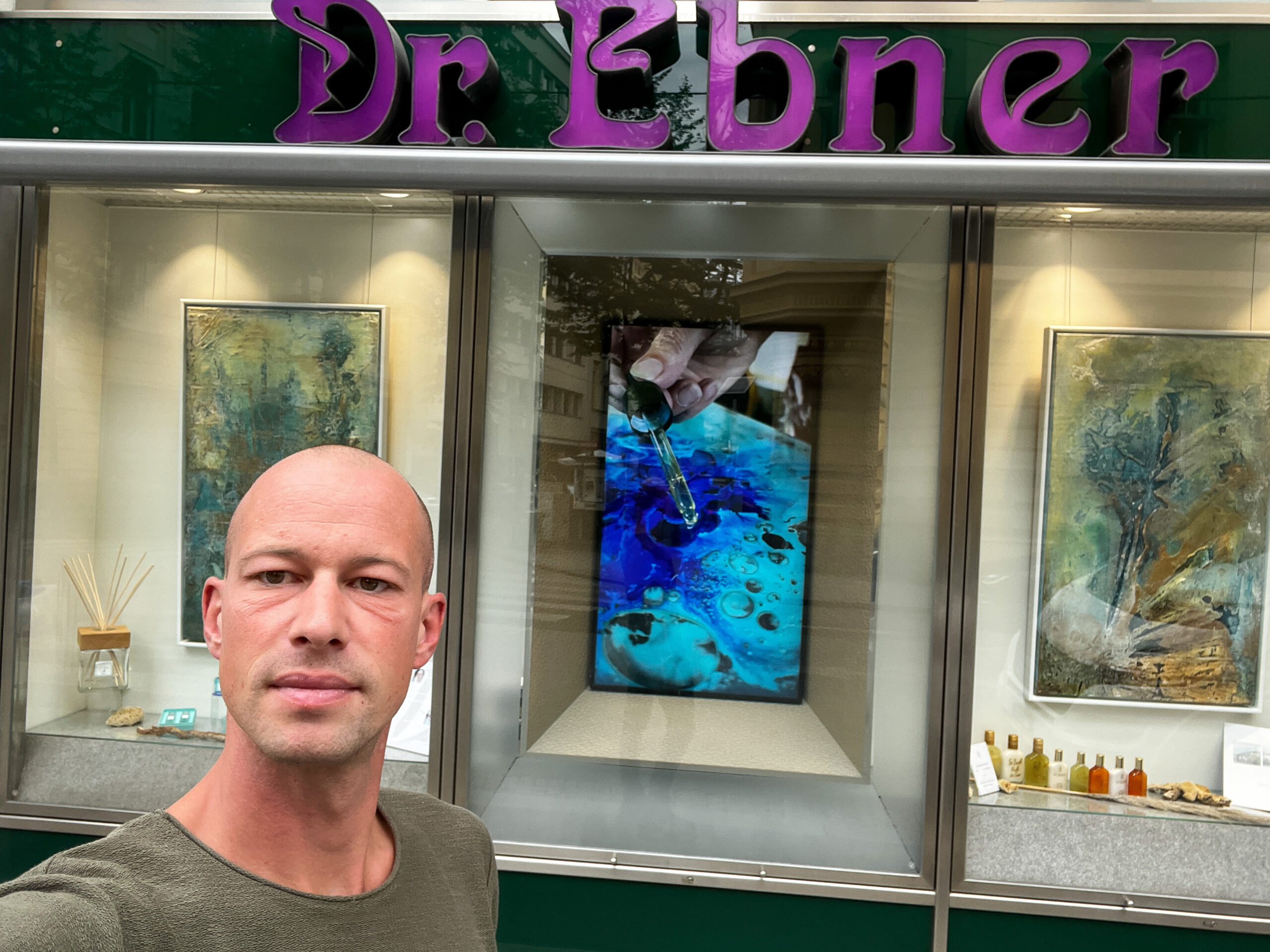 Nun folgte die Installation in den Auslagen der Parfumerie unter Mitwirken von Ilona und Michael Eitel.